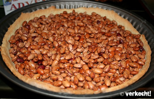 Dann trockene Bohnen (ich habe dafür Wachtelbohnen verwendet) gleich direkt in den Teig füllen oder den Teig mit Backpapier auslegen und dann erst die Bohnen einfüllen (das macht die Entfernung der Bohnen um vieles einfacher… aber ihr könnt es natürlich so machen, wie ihr wollt!) und ins Rohr zum Backen geben.