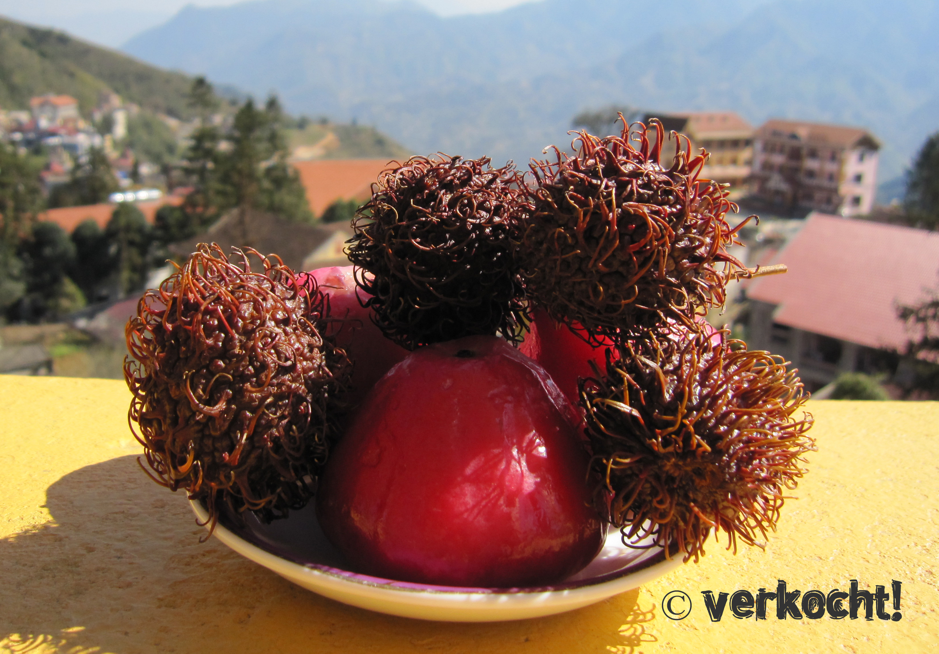 Eine Frucht, die wir nicht kannten war die Rambutan (Nephelium lappaceum). Als erstes dachten wir, dass es eine Litschi ist, aber die vielen witzigen Borsten auf der Schale machten uns stutzig.
