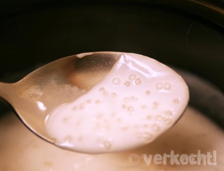 Superlecker! Dazu passt mangopuerre… Mhhhh. Kenne es so, dass man die Perlen in Wasser kocht und dann am ende kokosmilch dazu gibt.. Ganz wichtig, die Perlen ins heisse Wasser und nur koecheln lassen