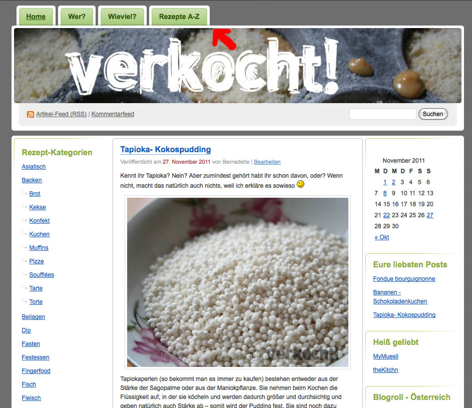 … gibt es auf Verkocht!. Wenn ihr nach oben schaut, seht ihr eine neue Seite rechts neben Wieviel?, nämlich Rezepte von A-Z. Ja, ich habe mir die Mühe gemacht, alle Rezepte nach Alphabet zu ordnen! Sogar ich hatte nämlich schon den Überblick verloren, wie viele und welche Rezepte ich schon gepostet habe! Jetzt weiß ich zum Beispiel, dass ich noch kein Rezept mit J auf meinem Blog habe, hat von euch vielleicht jemand eine Idee?
