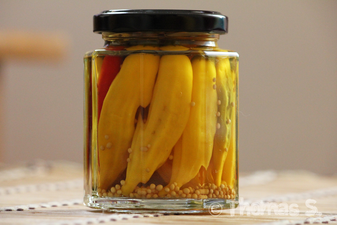 Thomas, von dem im Absatz oben die Rede ist, ist ein leidenschaftlicher „Chili-am-Fensterbankerl-und-am-Balkon-und-Garten“-Züchter, der mit seinen Züchtungen noch dazu echt traumhaft gute Gerichte zaubert! Seine eingelegten Chilis sind toll, einfach so zum „Jausnen“ oder als „Scharfmacher“ verschiedenster Speisen. DANKE, lieber Thomas, dass du deine Einlegemethode mit uns teilst!