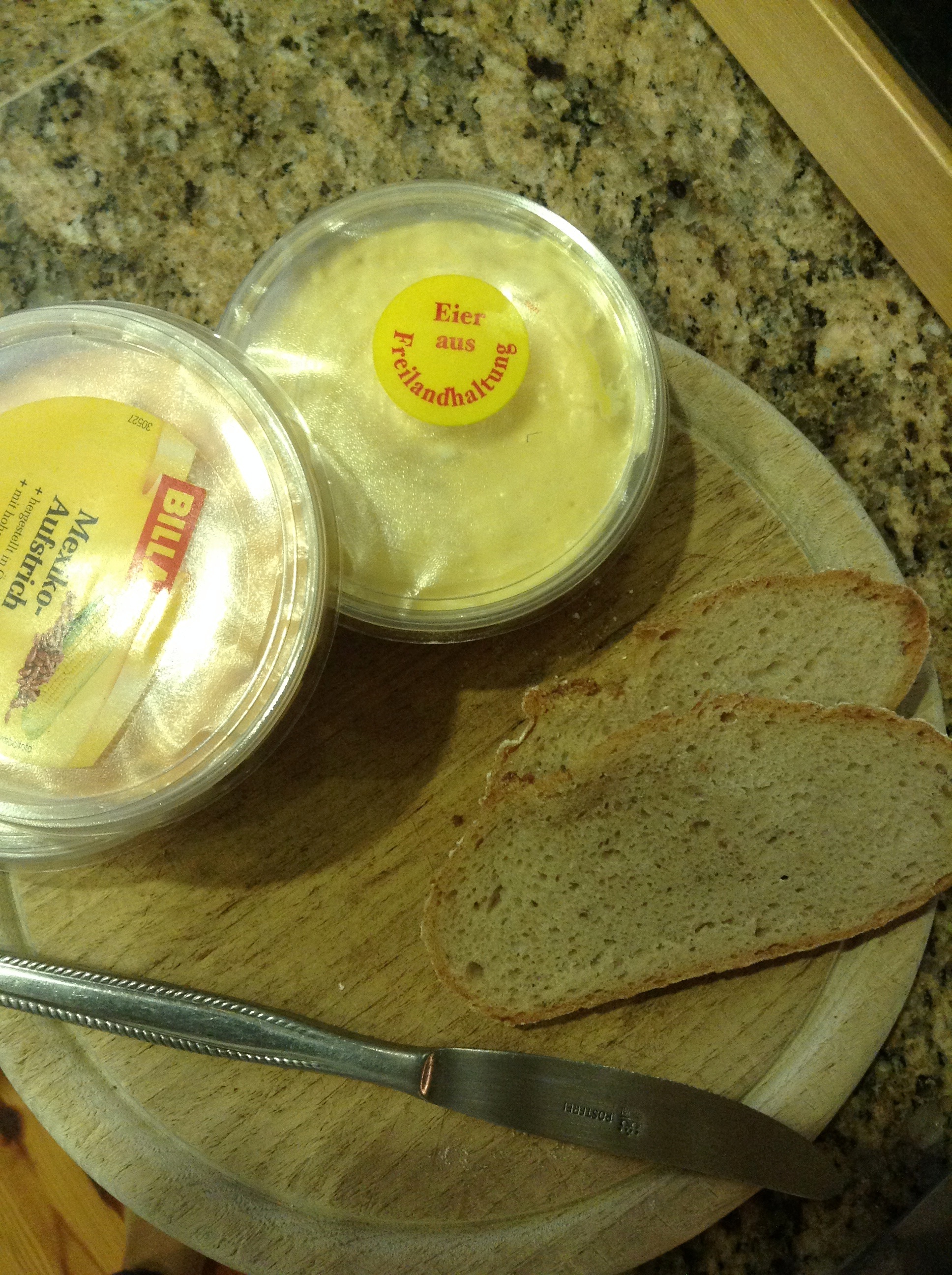 Aber in der Früh hab‘ ich mir doch einen Chai Latte gemacht und mir natürlich Frühstück hergerichtet. Ich hatte einen Gusto auf Aufstrichbrot, tja, und genau das hab‘ ich dann auch gegessen!