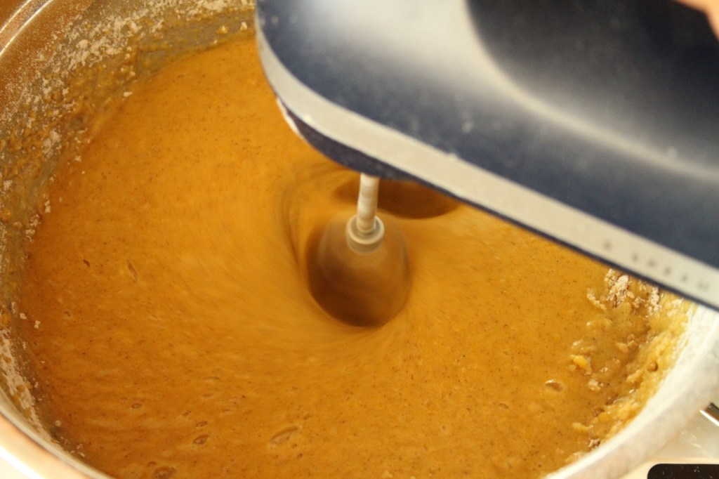 In einer großen Schüssel den Zucker mit dem Kürbismus, dem Öl und den Eiern verrühren. Dann das Mehl, das Backpulver und den Zimt dazugeben und zu einer homogenen Masse verrühren. Zum Schluss die Rosinen unterheben und dann alles in die Form füllen.