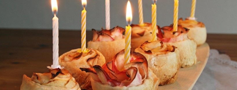 Ihr könnt natürlich „Apfel-Blätterteigrosen“ googeln und ein paar Videos anschauen, das hätte ich auch vielleicht machen sollen, dann wären meine schöner geworden, aber so habe ich einfach nach meiner Erinnerung gebacken. Sie sind gut geworden, aber eben nicht die Schönsten 😉