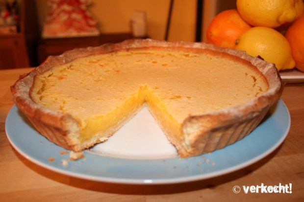 Das überbleibende Eiweiß mit 1 TL Wasser verquirlen, bis es schön schaumig ist, dann damit die fertig belegte Tarte bestreichen. Mit 2 TL Zucker bestreuen. 30 min backen und auskühlen lassen. Fertig!
