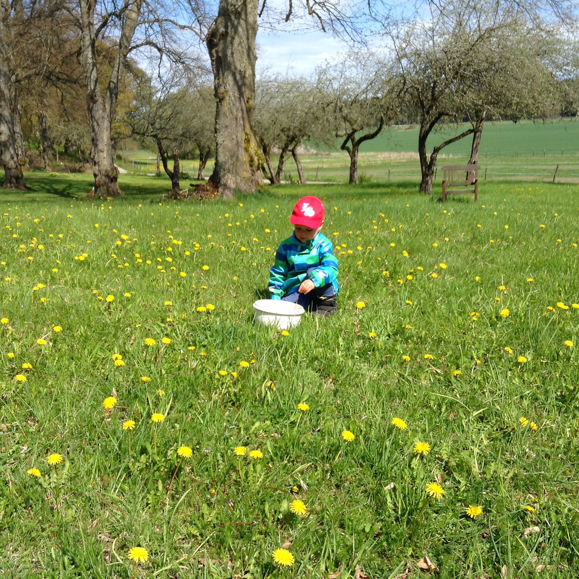 Als der kleine Herr nach Hause kam, haben wir erst mal Löwenzahn gepflückt, um später damit Löwenzahnhonig anzusetzen. Dann war er natürlich hungrig, also hab‘ ich ihm auch ein „Sääändwits“ gemacht und er hat dazu Wasser getrunken.