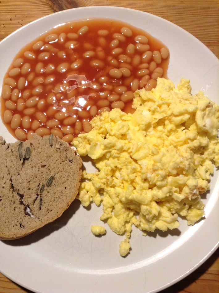 Die Inspiration fehlte irgendwie an dem Tag! Aaaber, wir haben trotzdem sehr gut zu Abend gegessen, da mir in letzter Zeit Erbsen-Käsesuppe mit wachsweichem Ei und knusprigem Speck mit Vollkornbrot eingefallen ist. Und danach gab’s vom besten Ehemann der Welt zubereitete Laduschki mit Marmelade. Yummie!